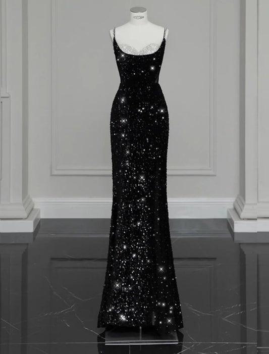 Mermaid / Trumpet Evening Gown Sparkle & Shine Dress Formal Wedding Guest Floor Length Sleeveless Spaghetti Strap Sequined with Sequin