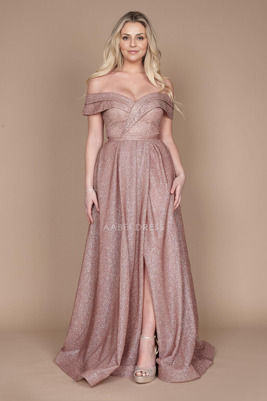 AABEI DRESS Formal Wear Dresse Elegant Off Shoulder Sweetheart Neckline High Front Slit Glitter Long Mother Of The Bride Dress