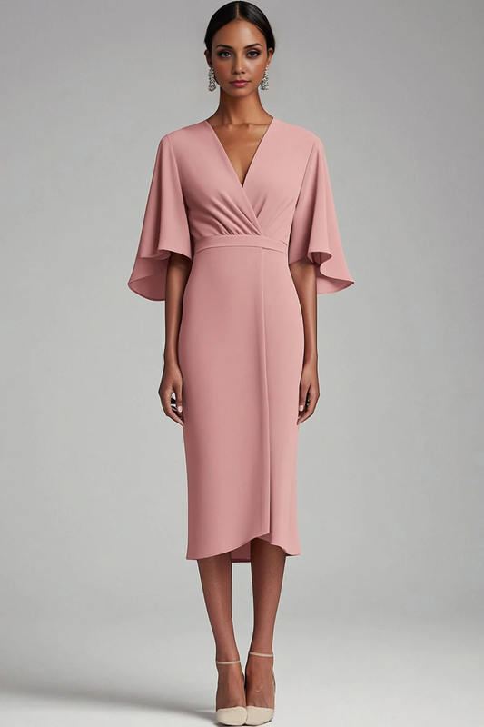 AABEI DRESS Mother Of The Bride Dress V Neck Bodycon Chiffon 1/2 Sleeves Tea-Length Elegant Formal Wear Dresse