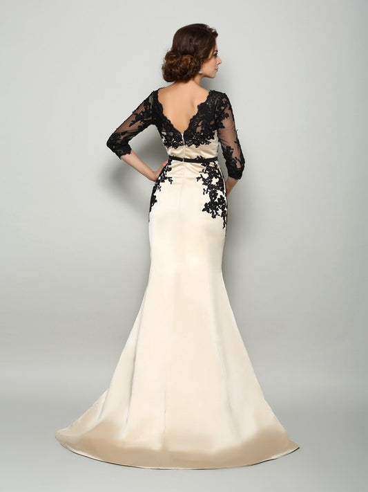 Trumpet/Mermaid Bateau Lace 1/2 Sleeves Long Satin Mother of the Bride Dresses
