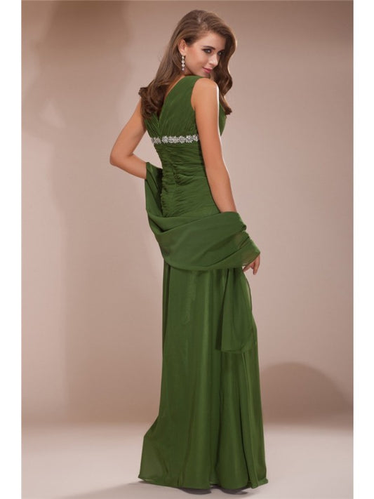 Sheath/Column V-neck Sleeveless Beading Long Chiffon Mother of the Bride Dresses