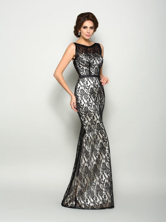 Trumpet/Mermaid Bateau Lace Sleeveless Long Woven Satin Mother of the Bride Dresses