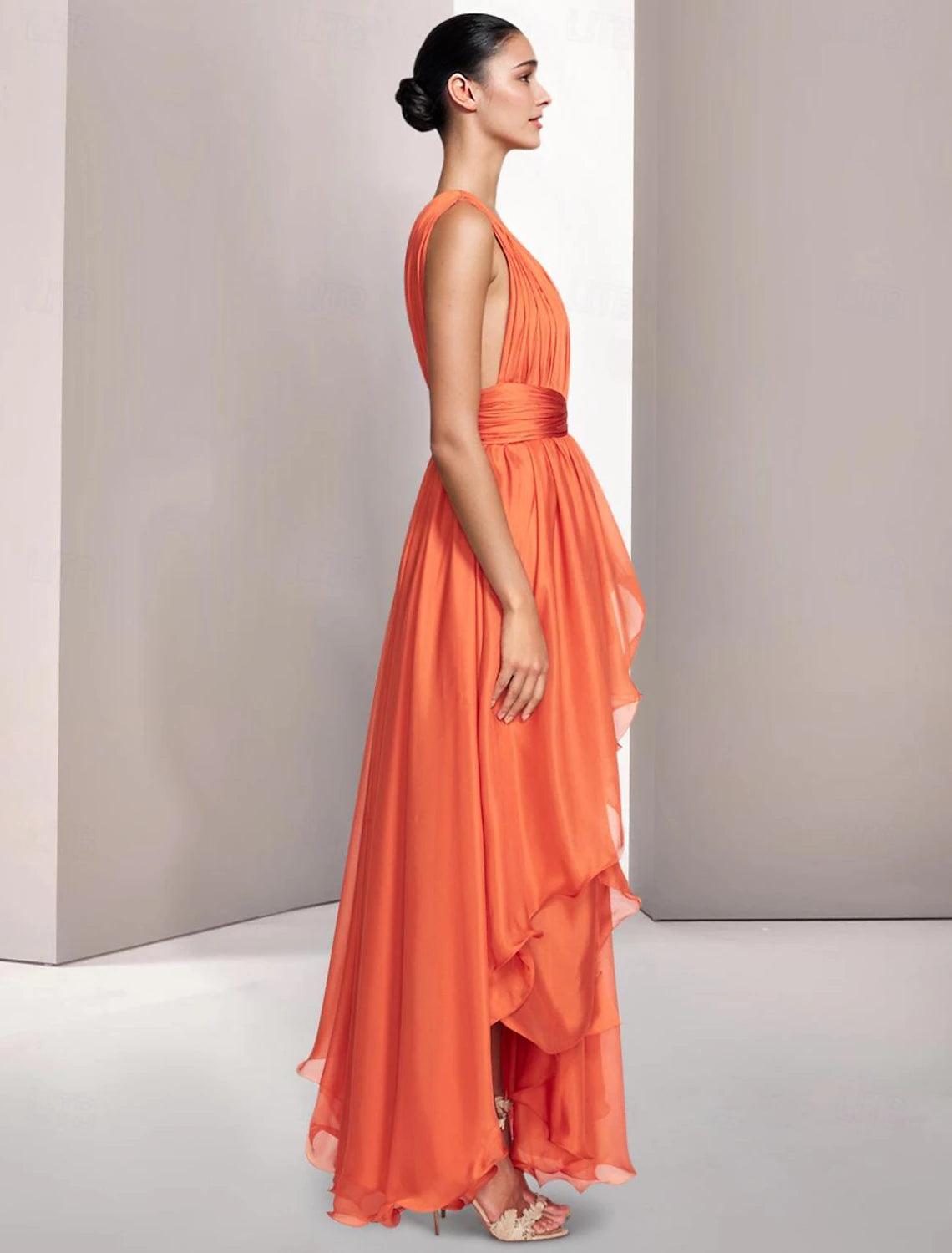 A-Line Elegant Dress Formal Summer Asymmetrical Sleeveless Prom Dresses V Neck Chiffon with Ruched Fall November December Wedding Guest Dress