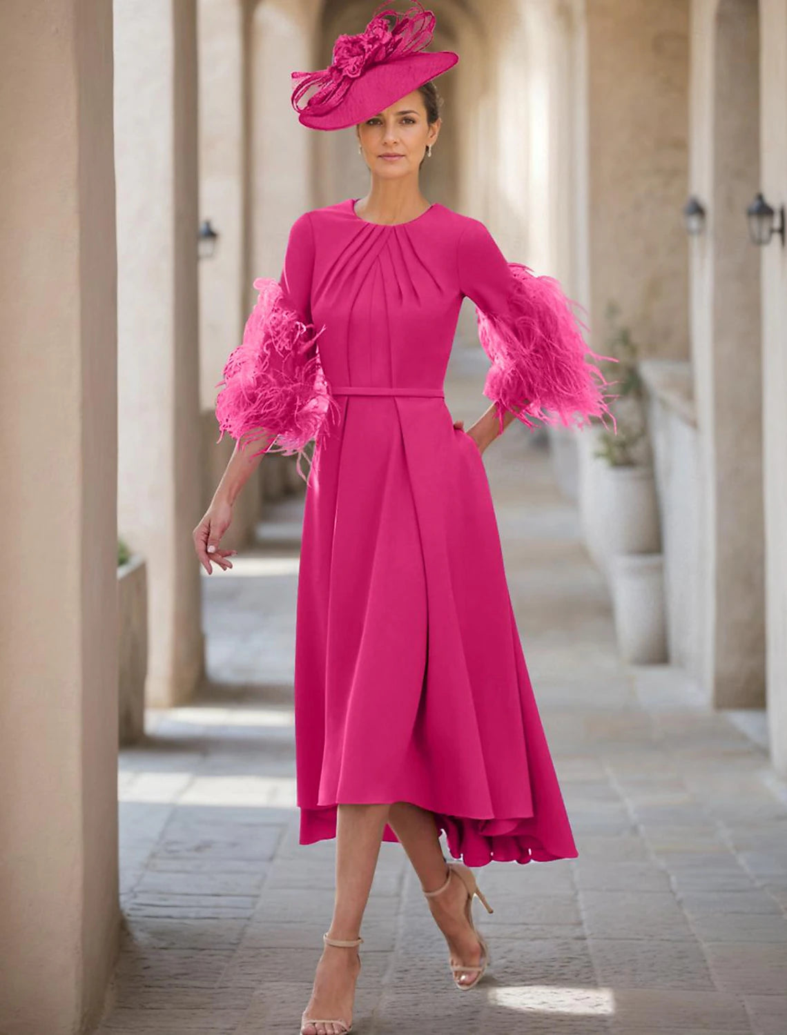 A-Line Elegant Jewel Neck Asymmetrical Stretch Fabric Half Sleeve with Mother of the Bride Dress