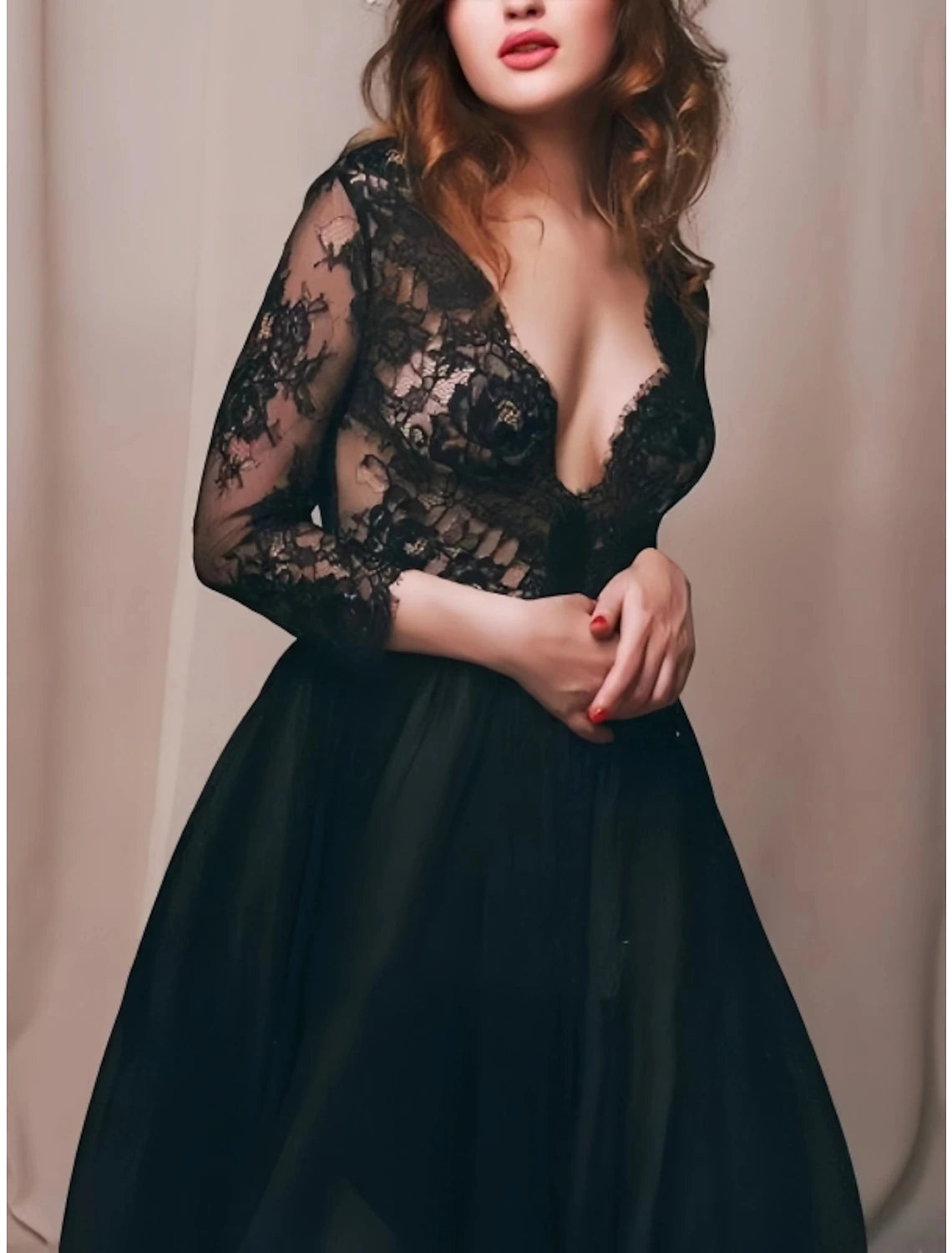 A-Line Evening Gown Party Dress Birthday Fall Floor Length 3/4 Length Sleeve V Neck Satin with Pleats