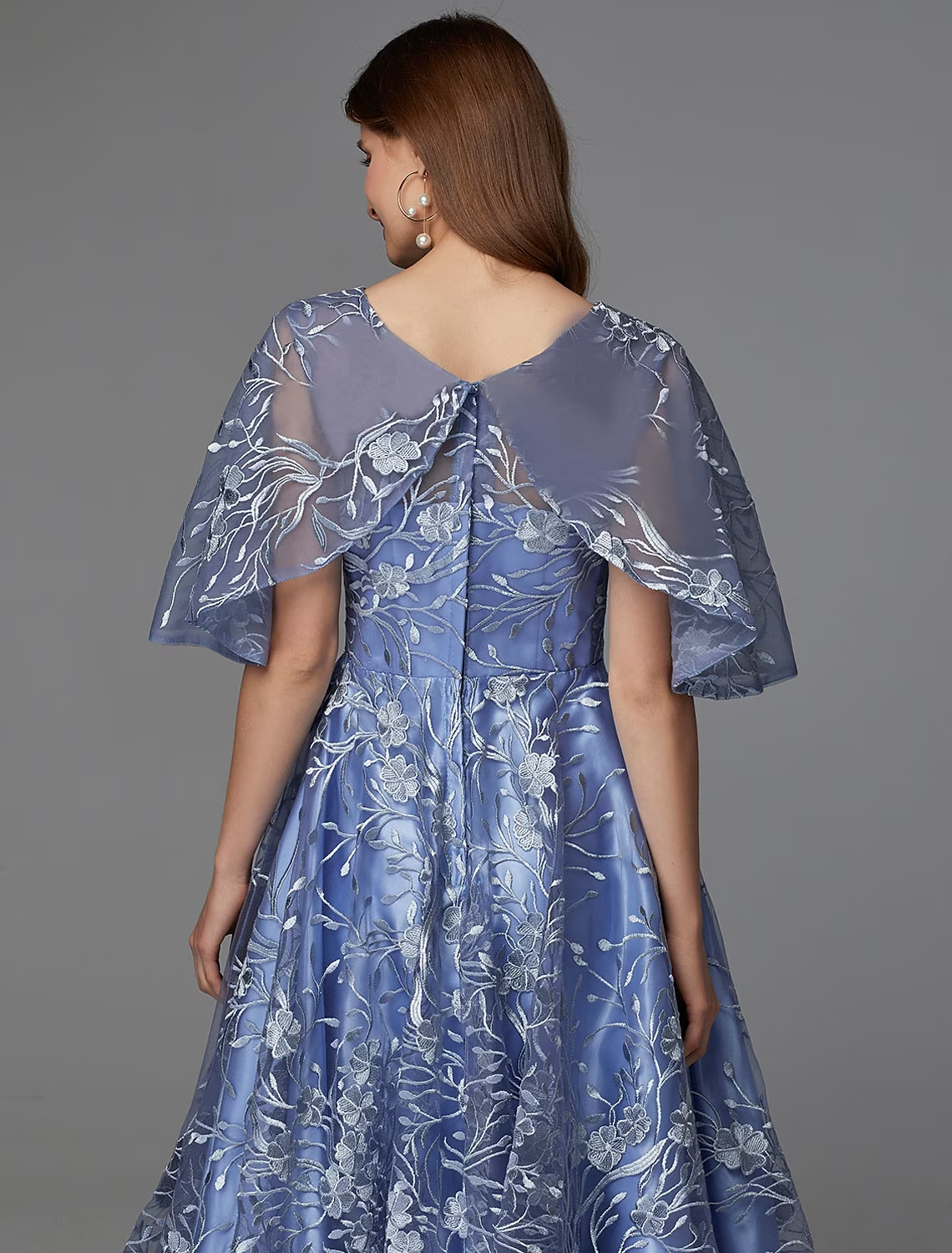 A-Line Floral Dress Wedding Guest Tea Length Sleeveless V Neck Lace V Back with Pattern / Print Appliques Mother of the Bride Dresses