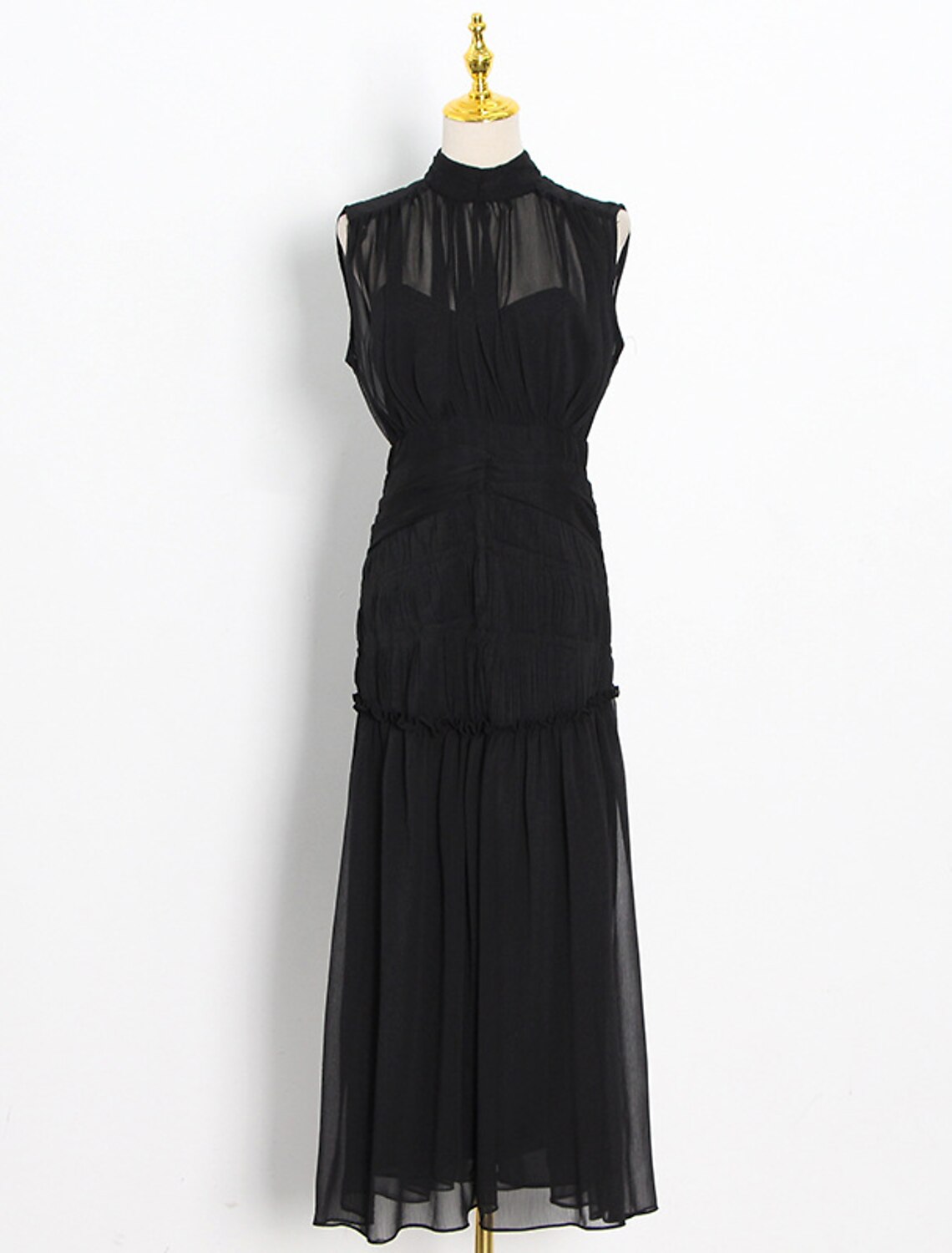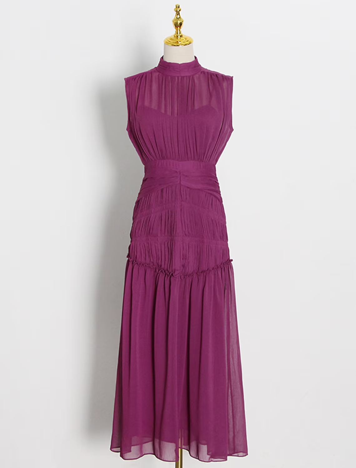 A-Line Homecoming Dresses Elegant Dress Holiday Ankle Length Sleeveless High Neck Chiffon with Pleats