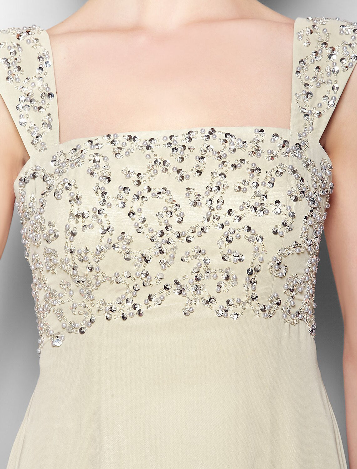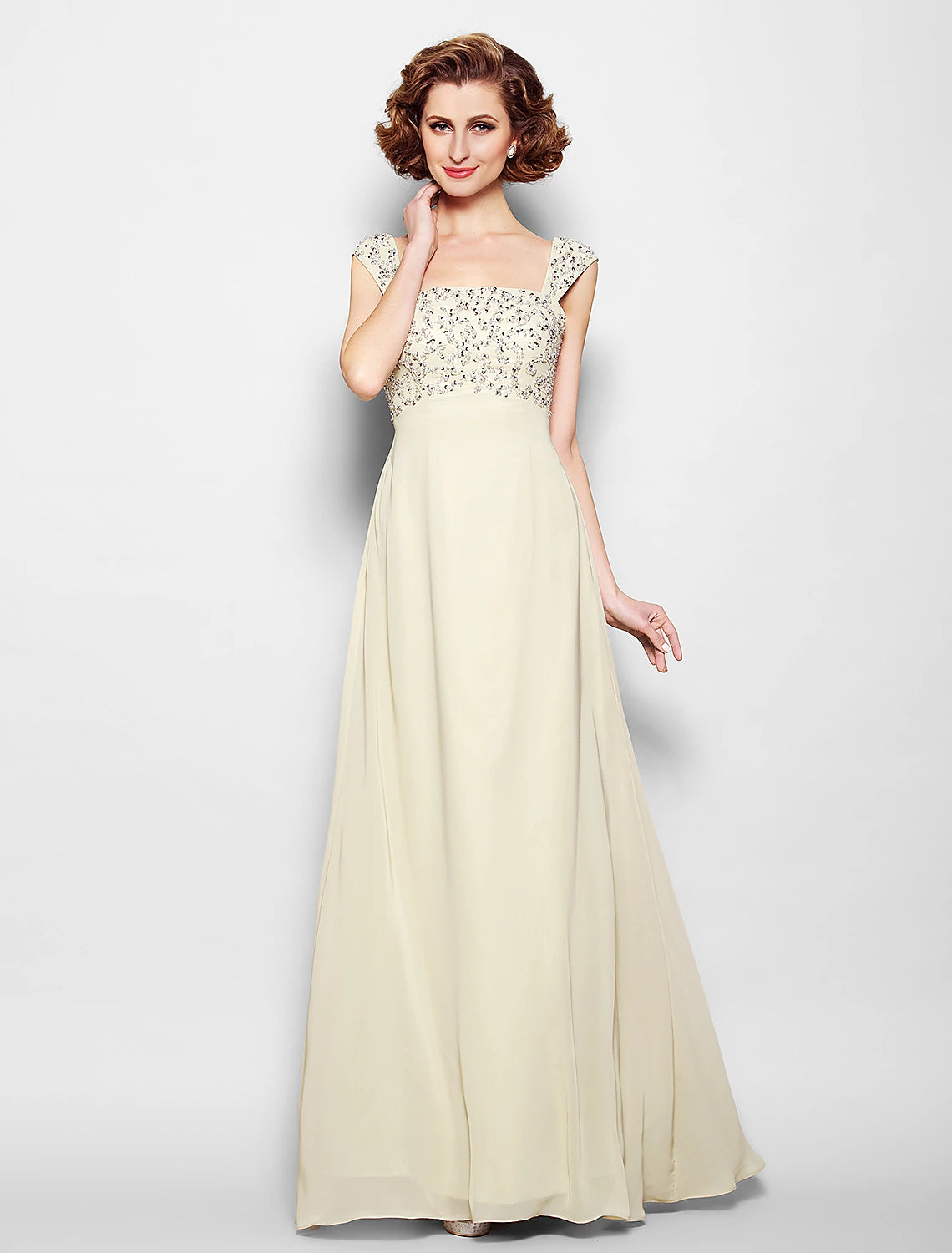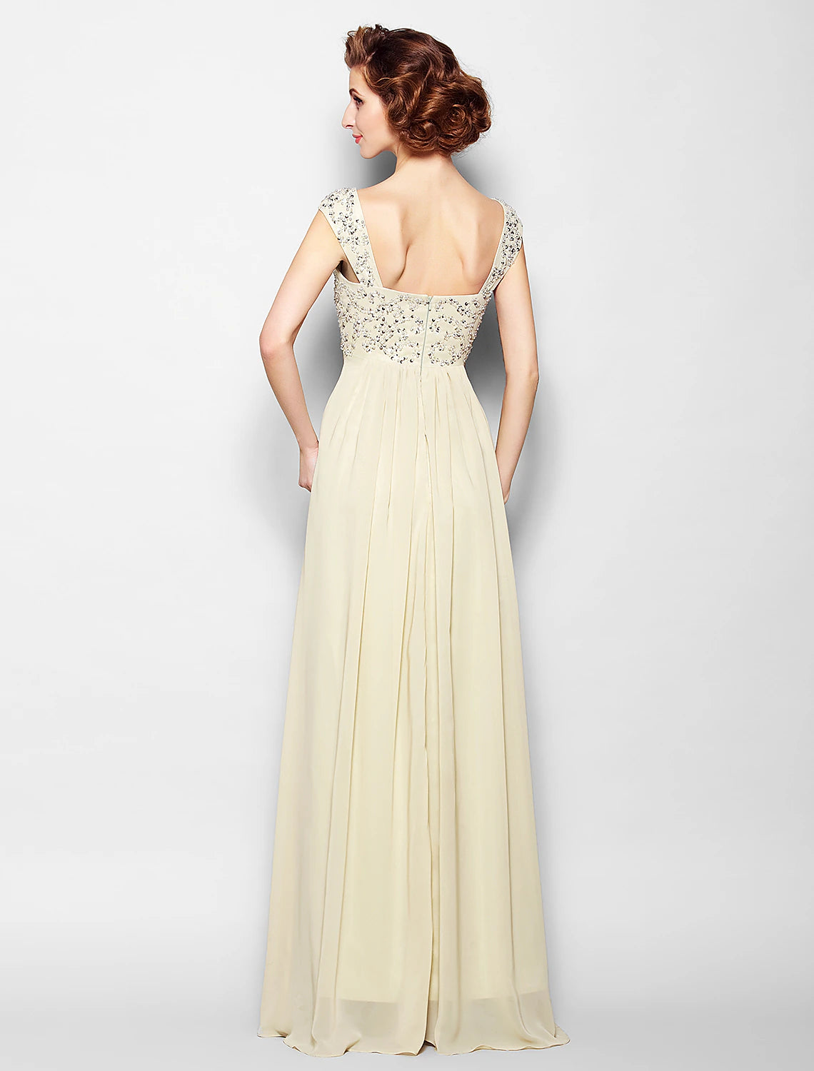 A-Line Mother of the Bride Dress Sparkle & Shine Straps Floor Length Chiffon Sleeveless No with Beading