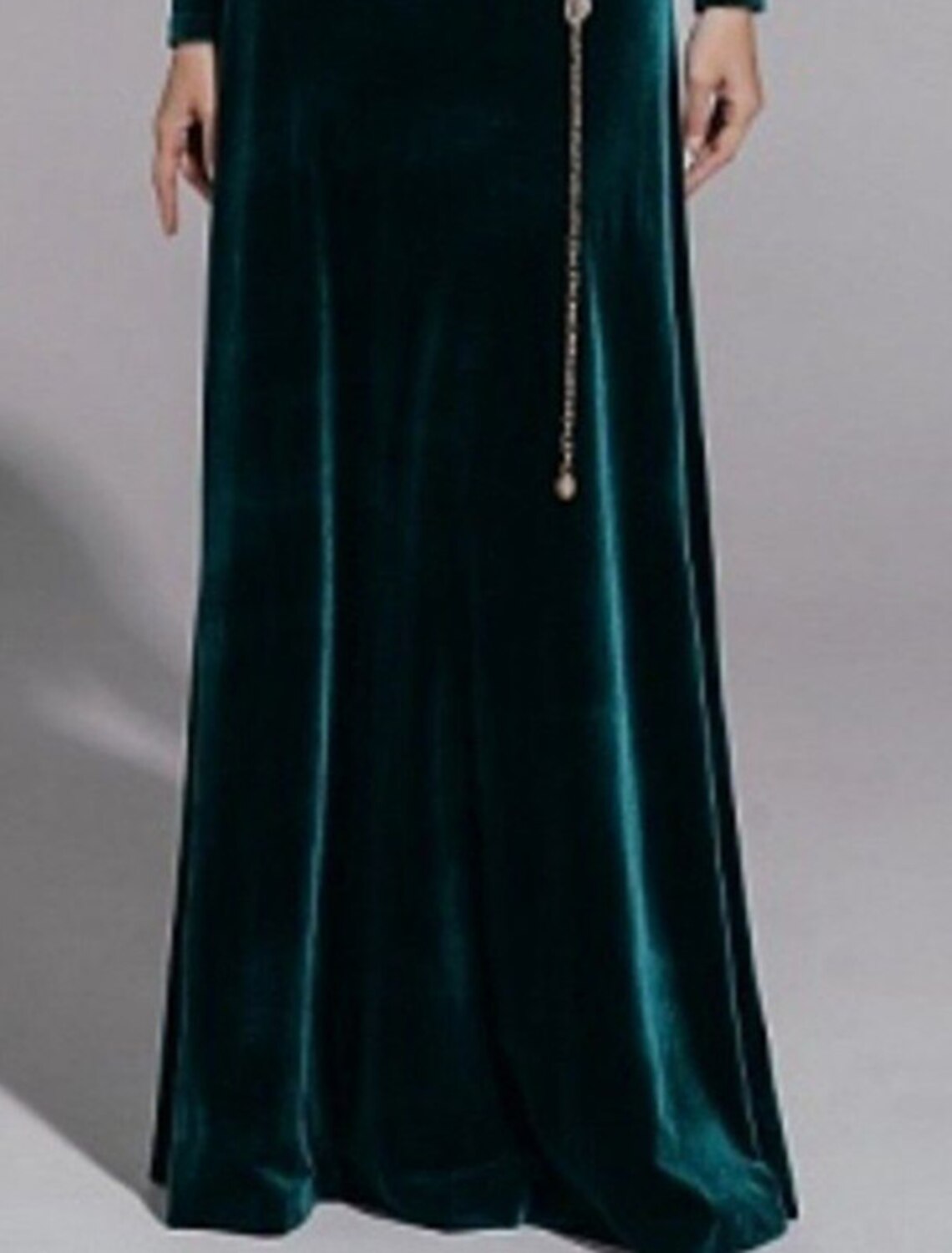 A-Line Mother of the Bride Dress Wedding Guest Simple Elegant Jewel Neck Floor Length Velvet Long Sleeve No with Sash / Ribbon Solid Color