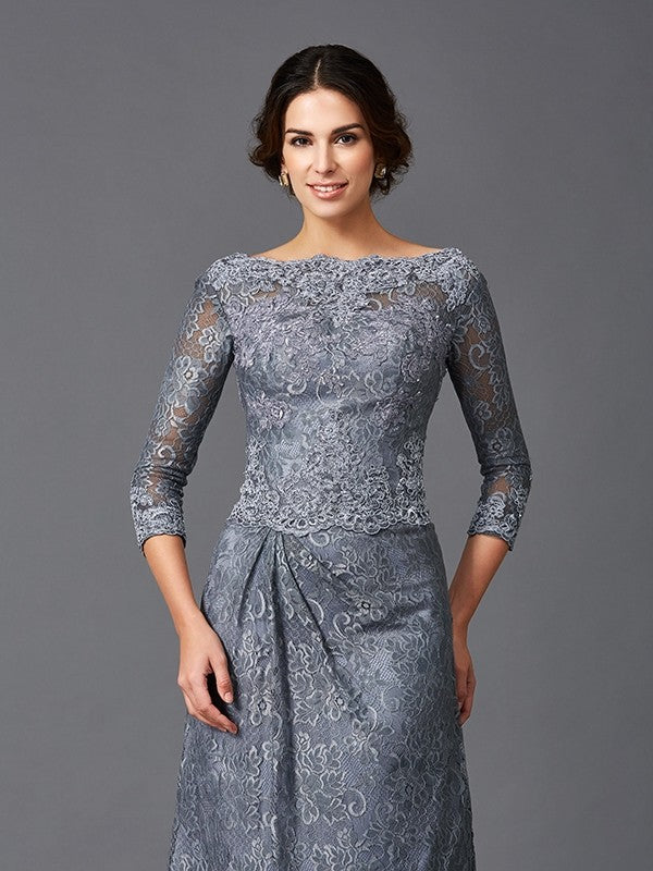 A-Line/Princess Bateau Lace 3/4 Sleeves Long Net Mother of the Bride Dresses