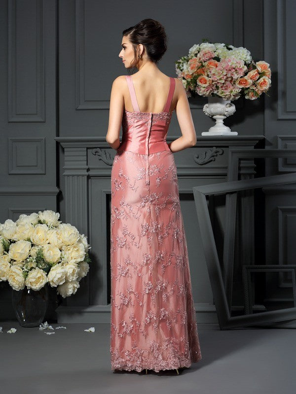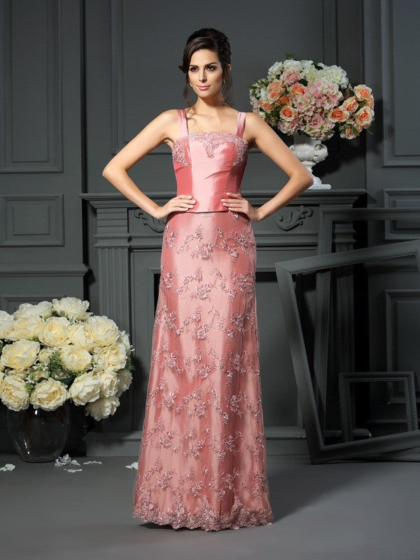 A-Line/Princess Straps Lace Sleeveless Long Taffeta Mother of the Bride Dresses