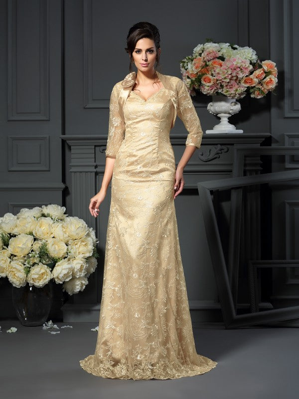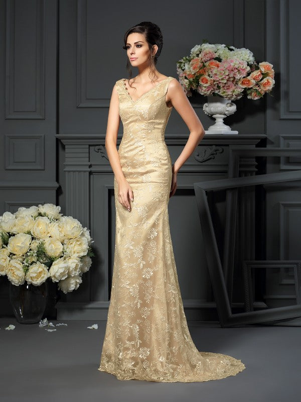 A-Line/Princess V-neck Lace Sleeveless Long Lace Mother of the Bride Dresses