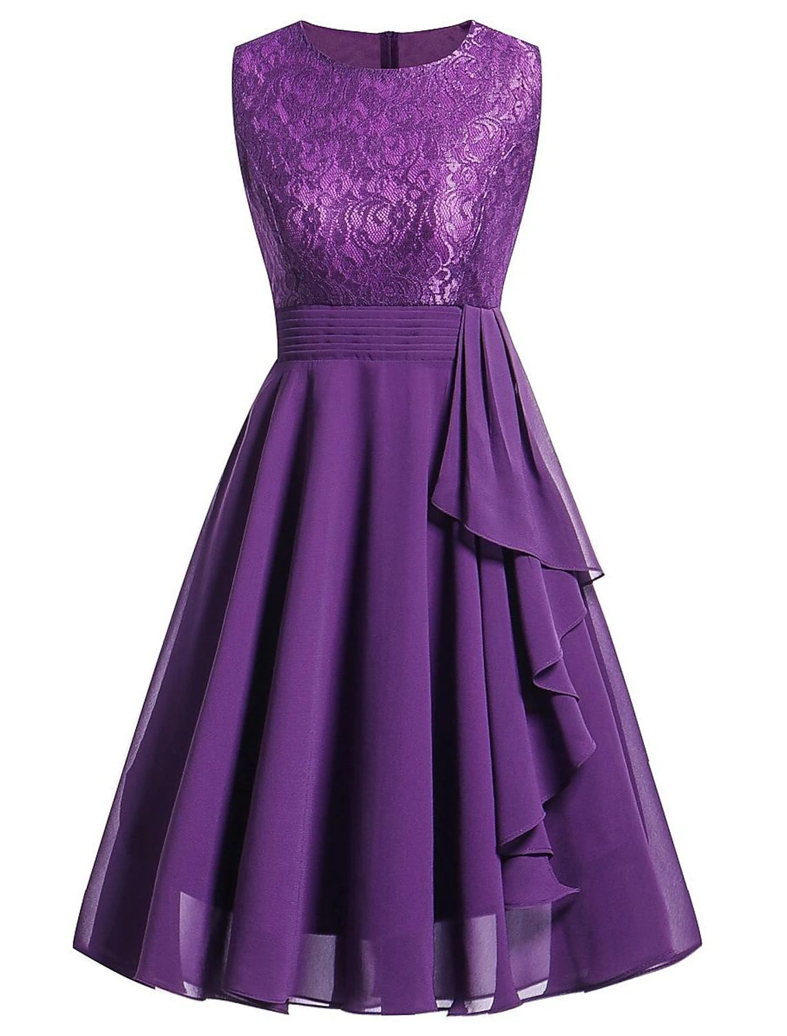 A-Line Special Occasion Dresses Hot Dress Holiday Homecoming Knee Length Sleeveless Jewel Neck Chiffon with Draping Lace Insert