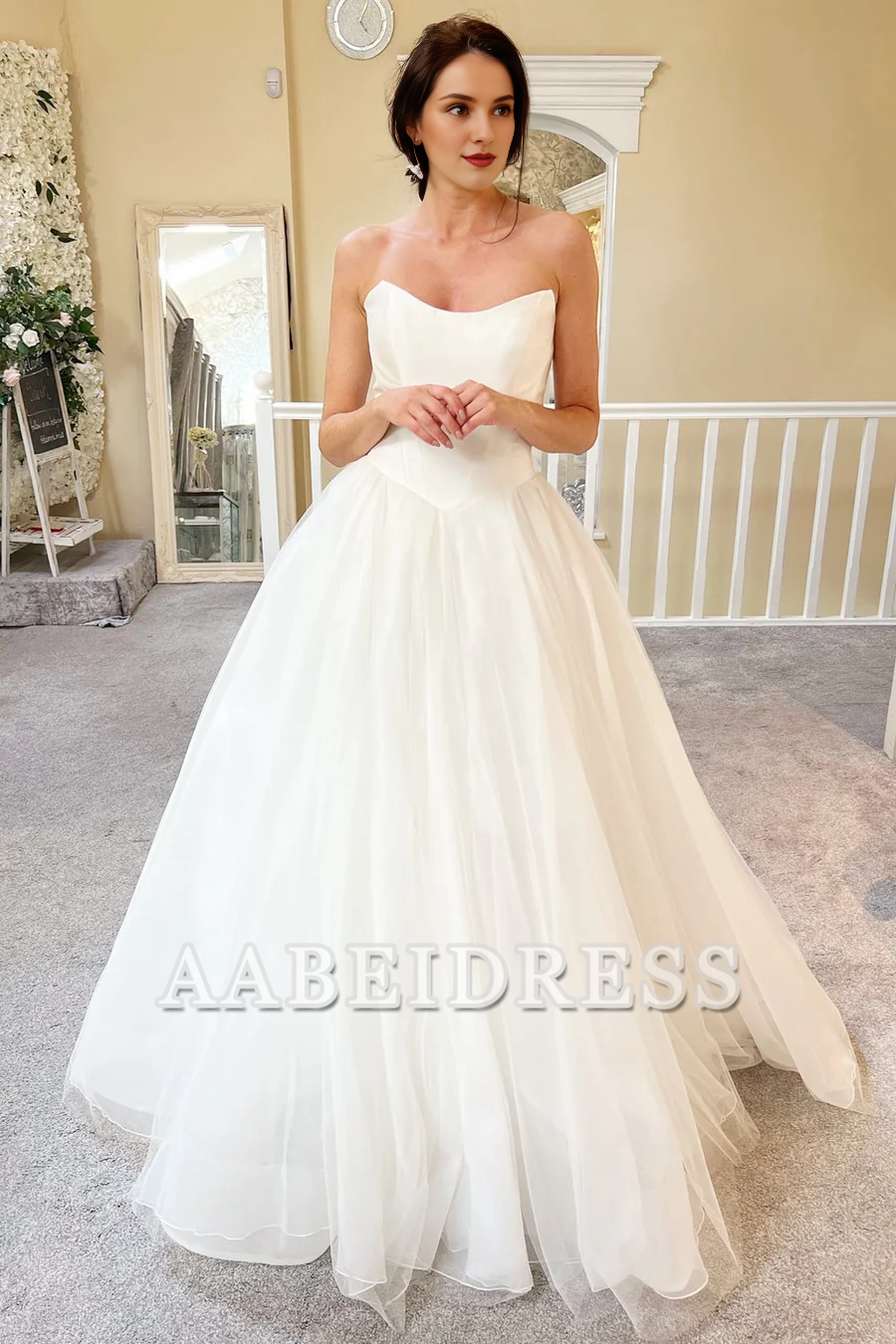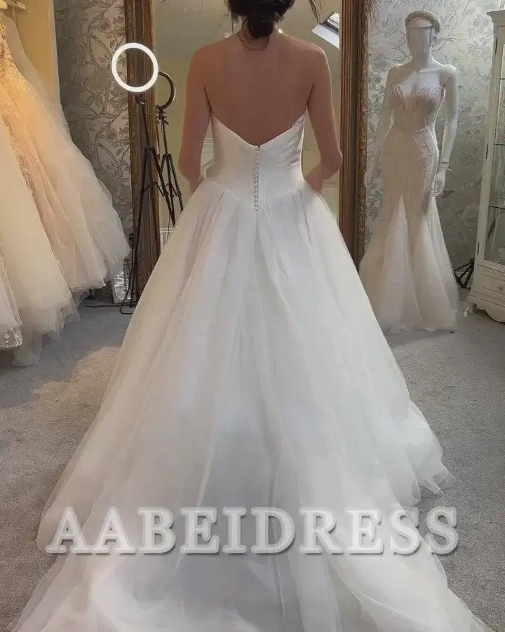 AABEI DRESS Exquisite Romantic Wedding Dress Strapless A-Line Tulle Long Elegant Formal Dresses