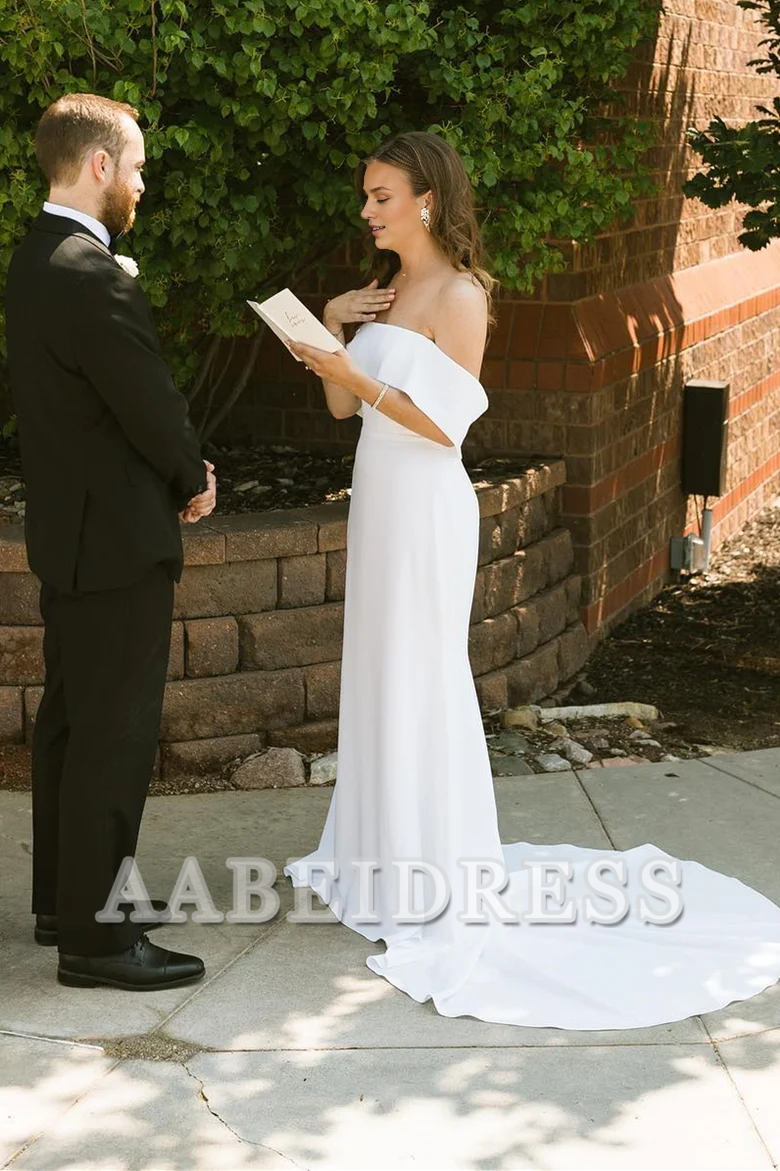 AABEI DRESS Exquisite Simple Wedding Dress Elegant Off-the-Shoulder Mermaid Sweep Train Formal Dresses