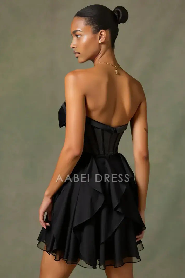 AABEI DRESS For Women Short Prom Dress Black A-Line Strapless Bowknot Sweetheart Neckline Keyhole Tiers Ruffles Hot Sale Homecoming Dress