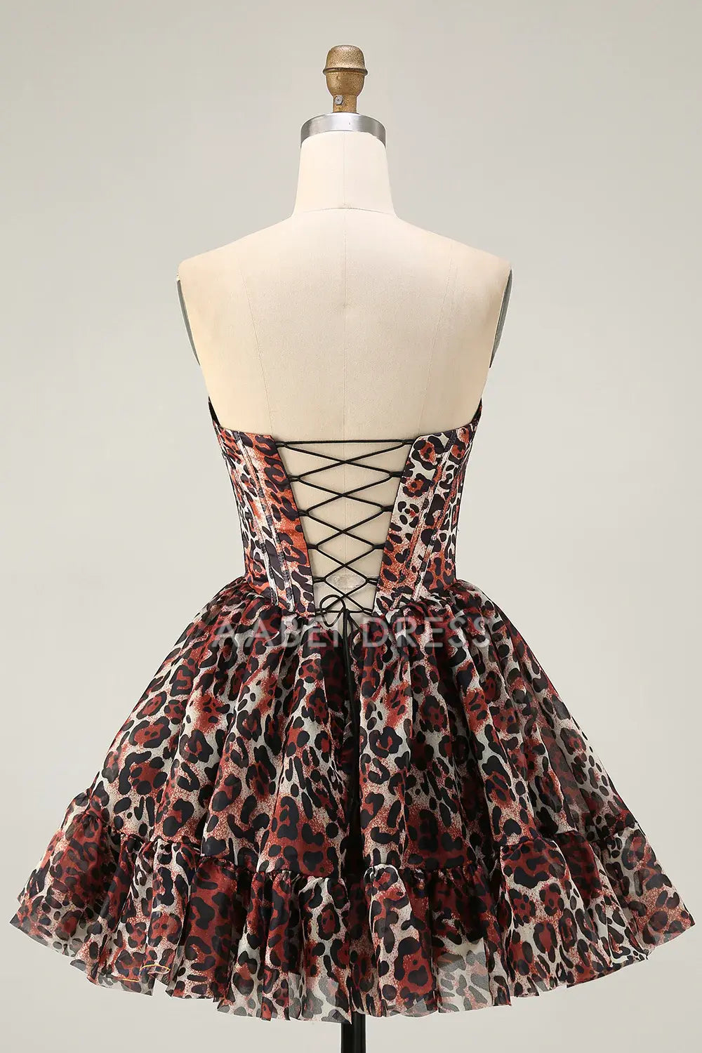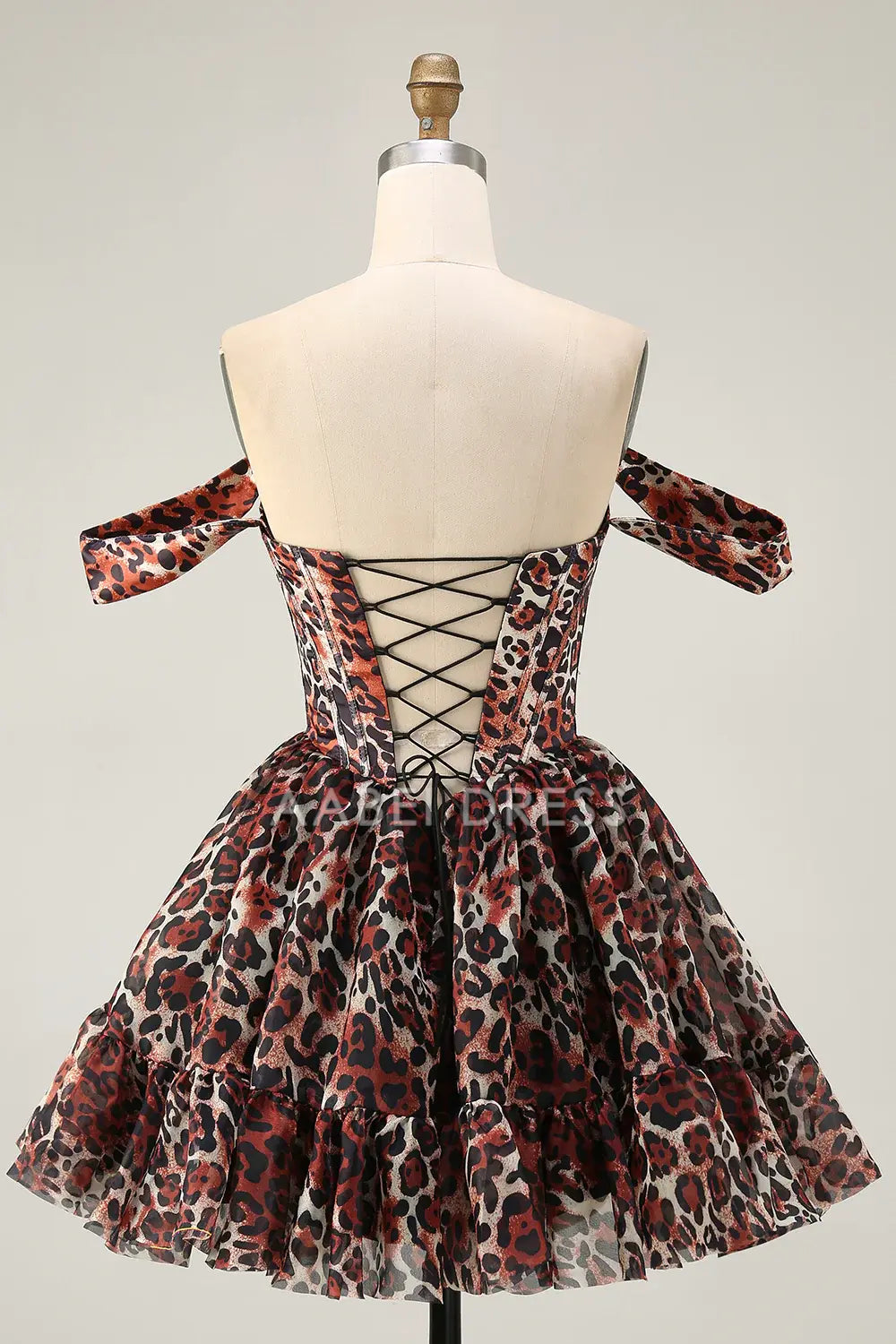 AABEI DRESS For Women Short Prom Dress Cheetah Print A Line Corset Off The Shoulder Backless Ruched Sexy Dress Affordable Hot Sale Homecoming Dress
