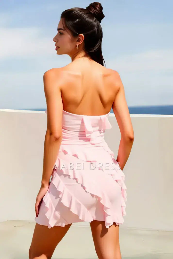 AABEI DRESS For Women Short Prom Dress Chic Sheath Strapless Tiers Ruffles Fashion Hot Sale Homecoming Dress