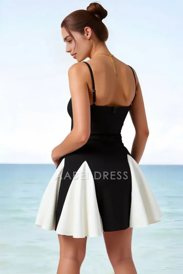 AABEI DRESS For Women Short Prom Dress Elegant Simple Two Tone A-Line Spaghetti Strap V Neck Mini Dress Hot Sale Homecoming Dress