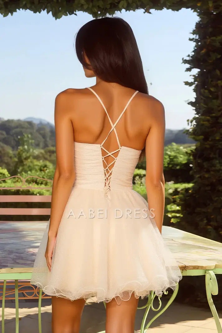 AABEI DRESS For Women Short Prom Dress Fashion A-Line Plunging V-Neck Spaghetti Straps Beaded Corset Bodice Backless Sparkle Hot Sale Homecoming Dress