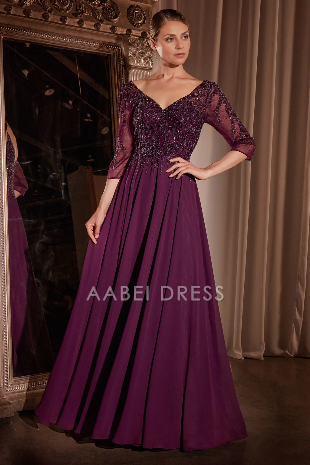 AABEI DRESS Formal Wear Dresse Elegant A Line V Neck 3/4sleeves Fashion Long Mother Of The Bride Dress