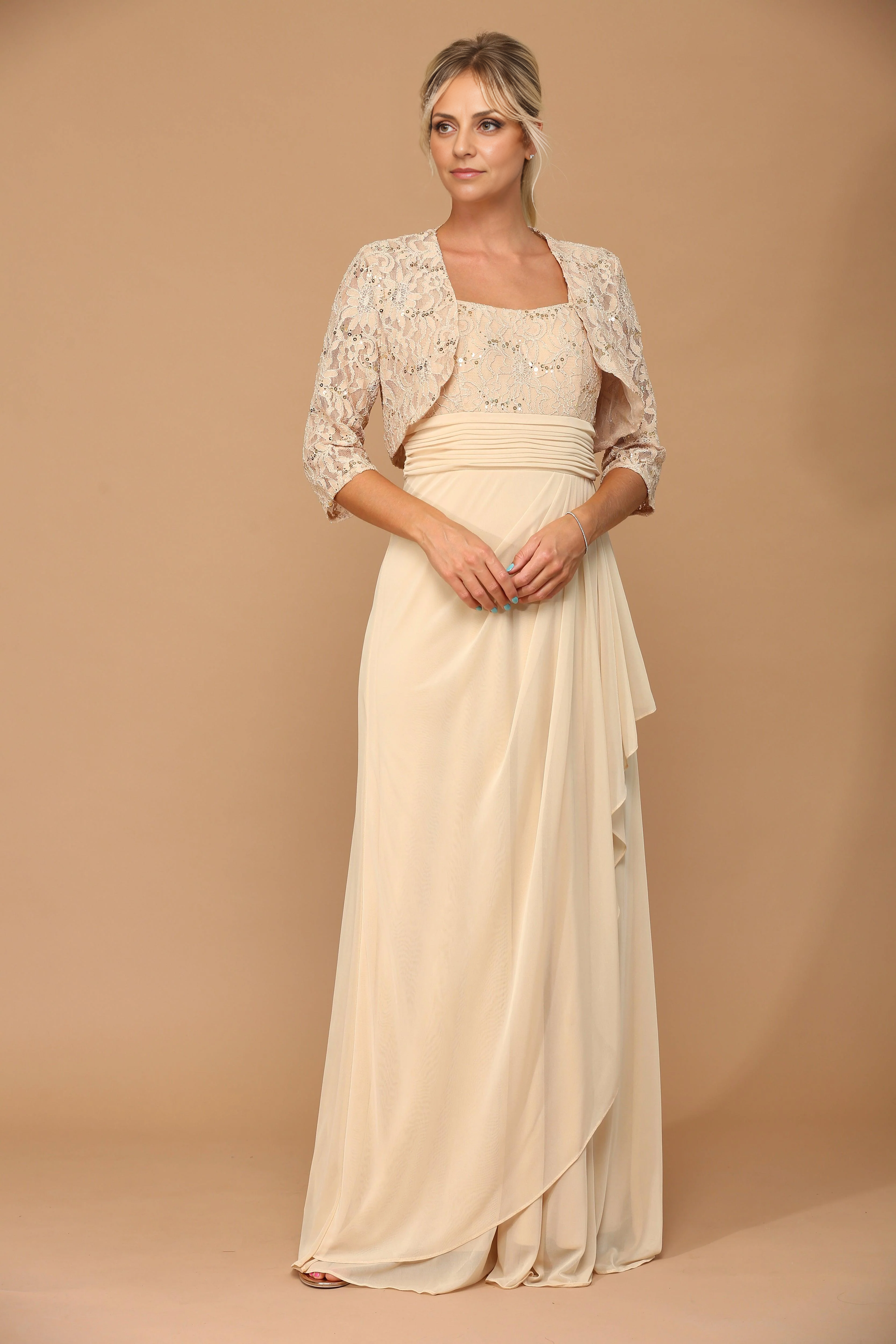 AABEI DRESS Formal Wear Dresse Elegant Two Piece Jacket 3/4 Sleeve Ruched Fashion Mother Of The Bride Dress