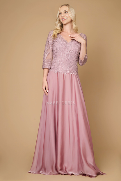 AABEI DRESS Formal Wear Dresse Fashion A Line Long Sleeve V Neck Lace Dress Exquisite Long Mother Of The Bride Dress