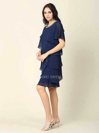 AABEI DRESS Formal Wear Dresse Round Neck Tiers Beautiful Knee-Length Mother Of The Bride Dress
