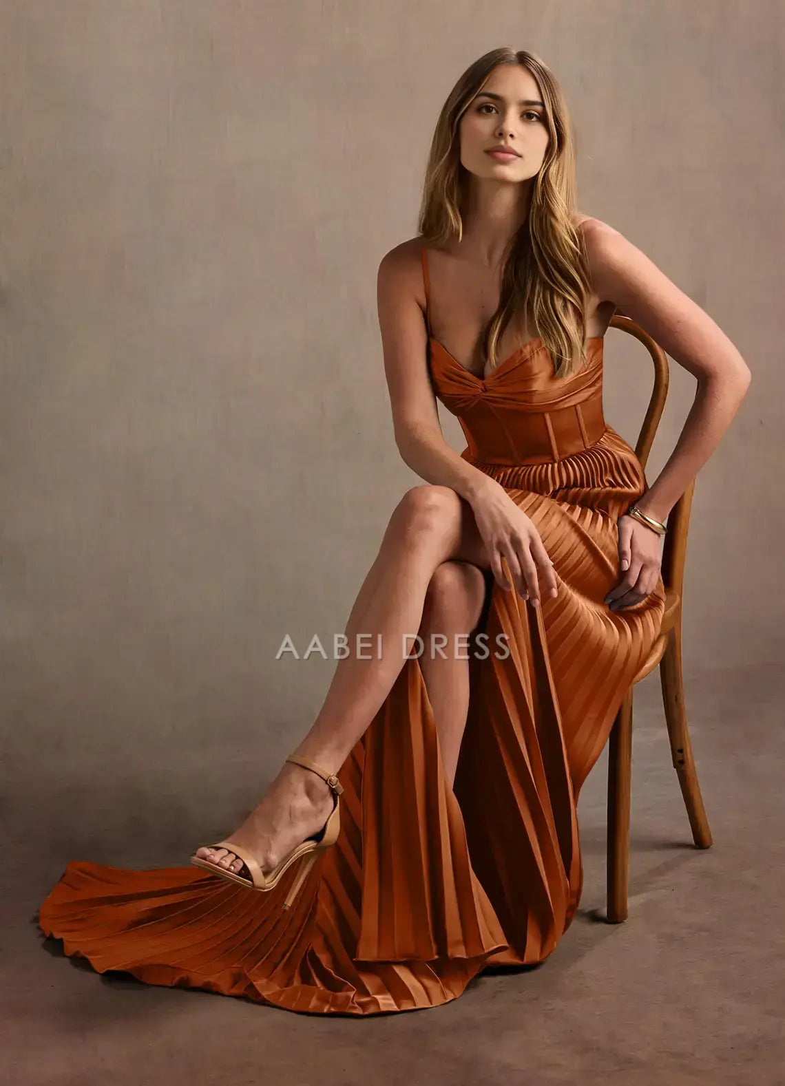 AABEI DRESS Formal Wear Dresses Fashion A Line Low-Cut Pleated Sweetheart Neckline Spaghetti Strap Pleated Dress Side Fork Exquisite Party Dress Hot Sale Prom Dress