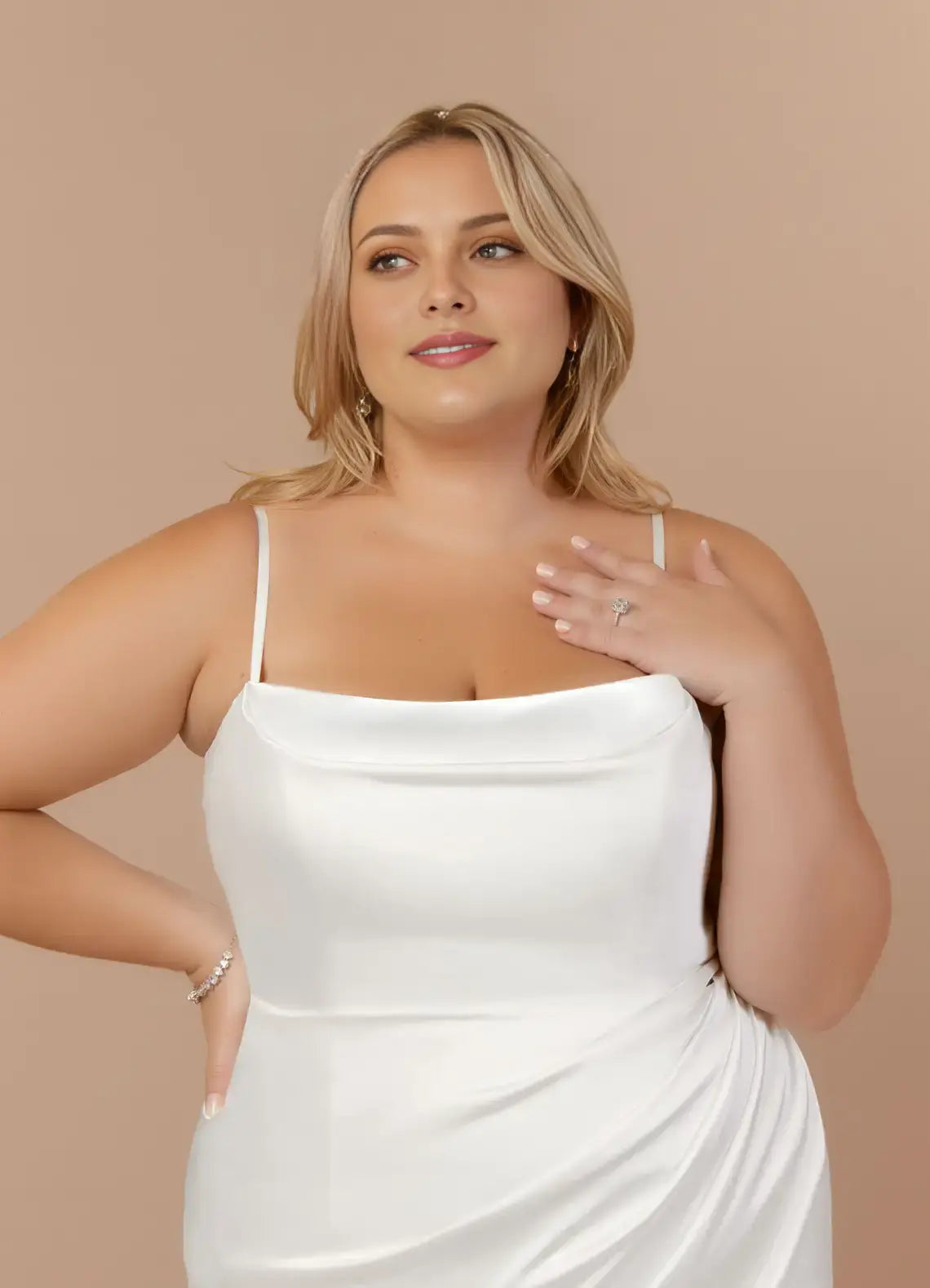 AABEI DRESS Formal Wear Dresses Short Prom Dress Elegant Sheath Cowl Neckline Spaghetti Strap Pleated Knee Length Midi Skirt Leg Slit Simple Plus Size Dress Hot Sale Homecoming Dress