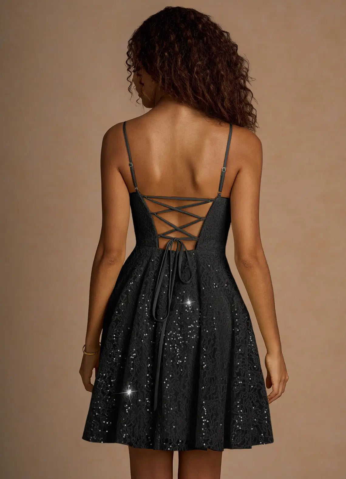 AABEI DRESS Formal Wear Dresses Short Prom Dress Sequin A Line Spaghetti Strap Backless Sexy Dress Sparkle Hot Sale Homecoming Dress
