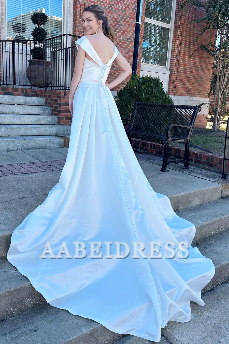 AABEI DRESS High Quality Youthful Wedding Dress A-Line V Neck High-Waist Long Sweep Train Formal Dresses