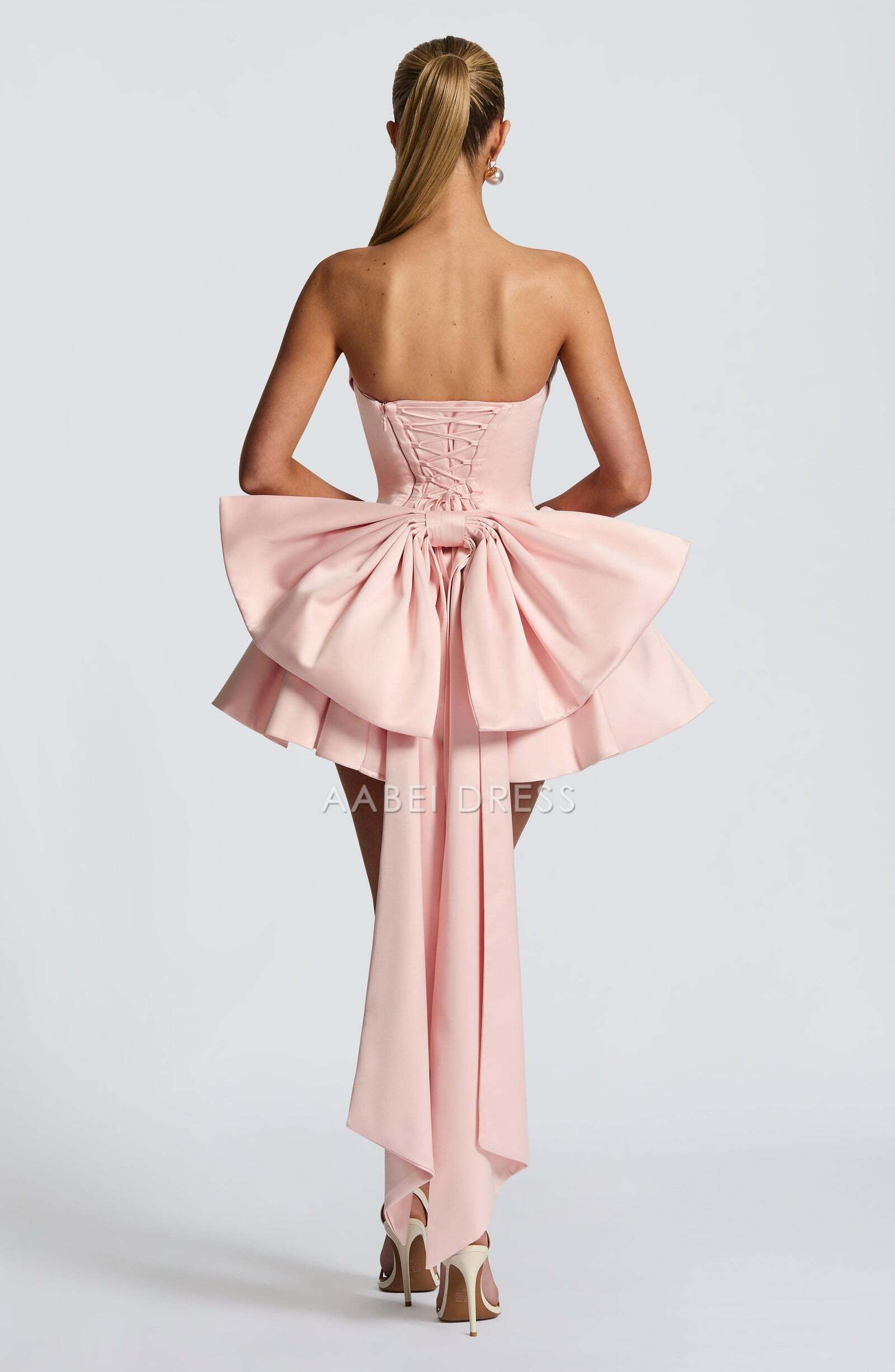 AABEI DRESS Hot Sale Homecoming Dress Exquisite Scooped neckline strapless Pleated Detachable bow Mini Dress Cute Short Prom Dresse