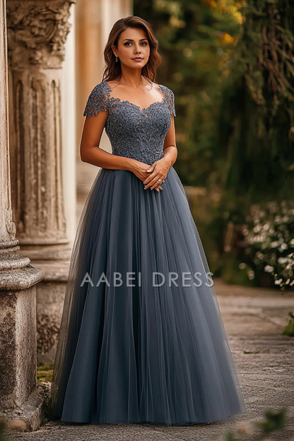 AABEI DRESS Mother Of The Bride Dress A Line Tulle Appliques Long Retro Formal Wear Dresses