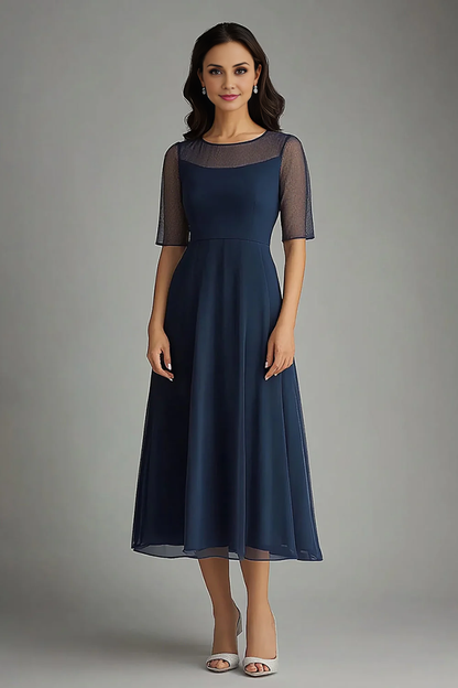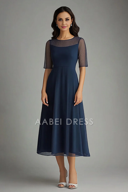 AABEI DRESS Mother Of The Bride Dress Chiffon Illsion Neck Long Short Sleeves Elegant Simple Formal Wear Dresse