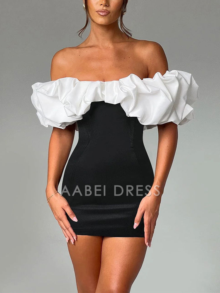 AABEI DRESS New Homecoming Dress sleeveless single shoulder dress slim fit bubble pleated elegant banquet party short hip mini skirt