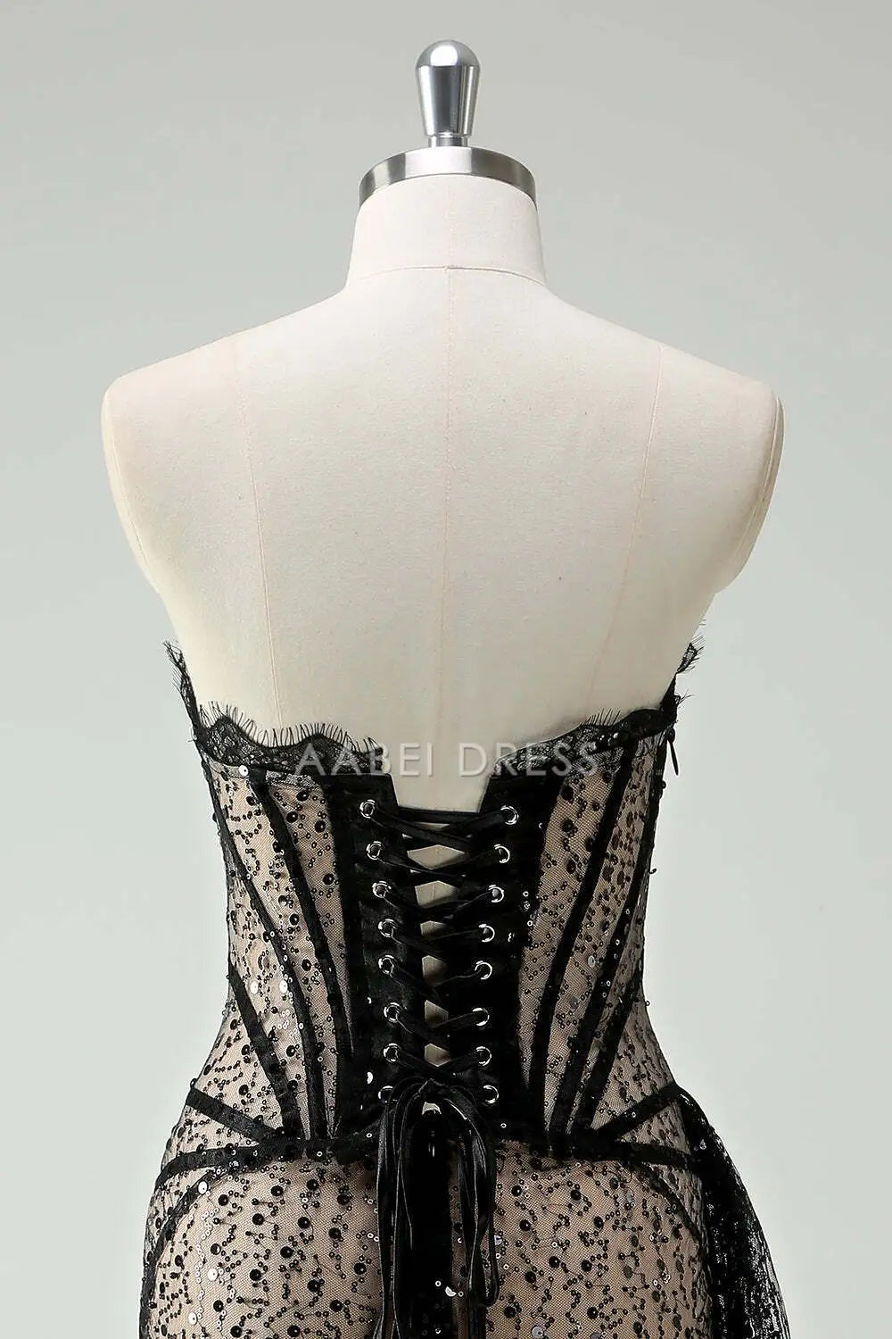 AABEI DRESS New Homecoming Dress Sparkly Strapless Sequin Sexy Short Prom Dress Streamer Graduation Dress