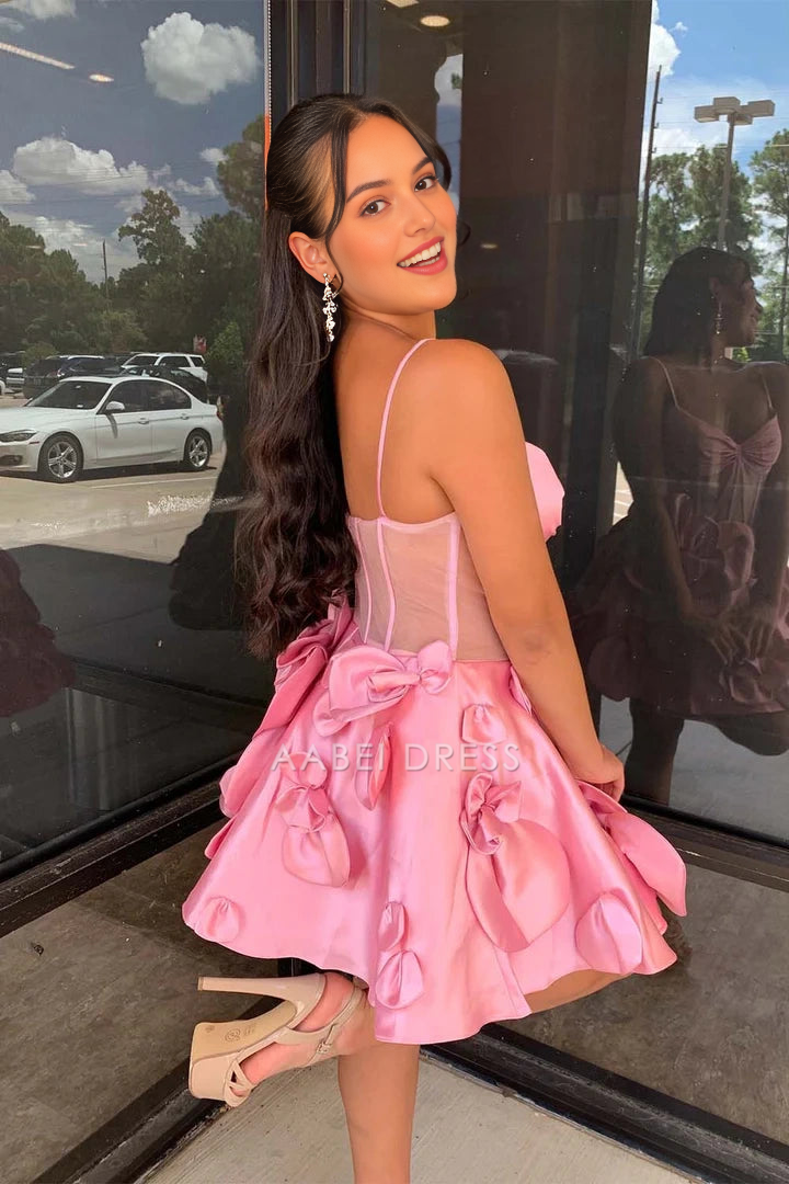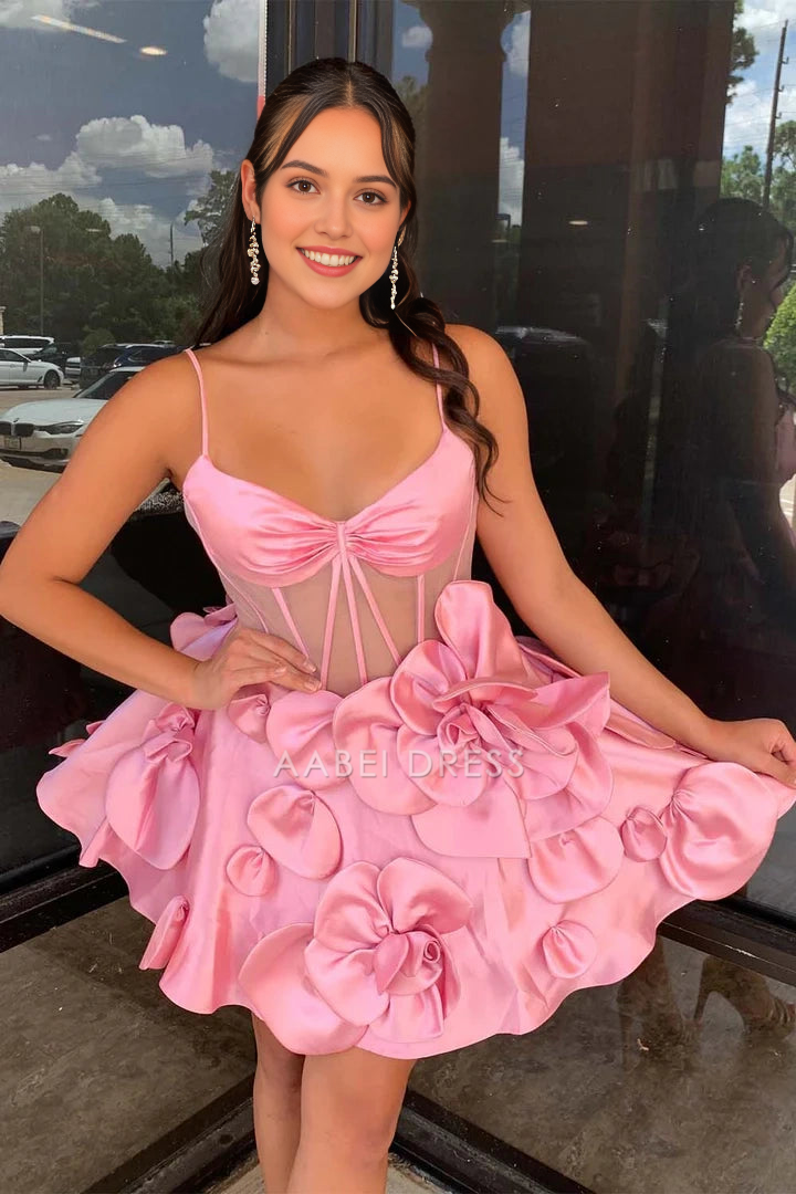 AABEI DRESS New Homecoming Dress Unique Fashion A-Line V-Neck Spaghetti Strap Sleeveless 3D Florals Backless Intricate Short Prom Dresse