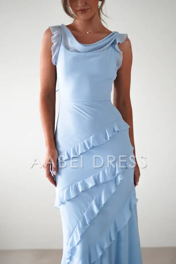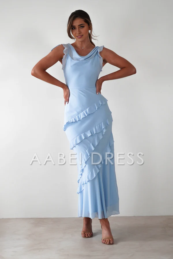 AABEI DRESS Prom Dress Closed Neck Cap Sleeves Tiers Ruched Sophisticated Elegant Dress