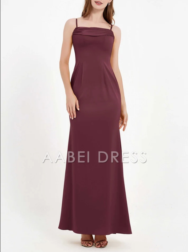 AABEI DRESS Sheath Bodycon Square Neckline Spaghetti Straps Long Crepe Gown Elegant Simple Evening Dress
