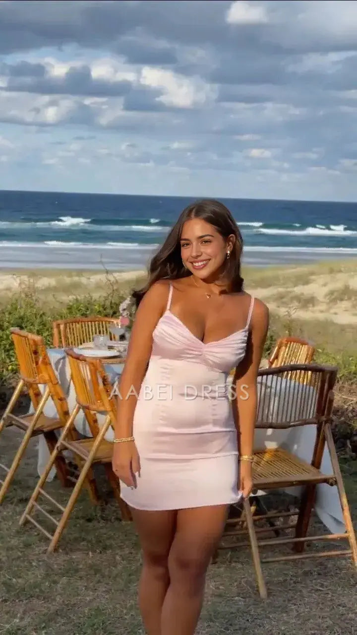 AABEI DRESS Short Prom Dress Simple Pink Sheath Spaghetti Strap V Neck Charming Cocktail Dress Hot Sale Homecoming Dress