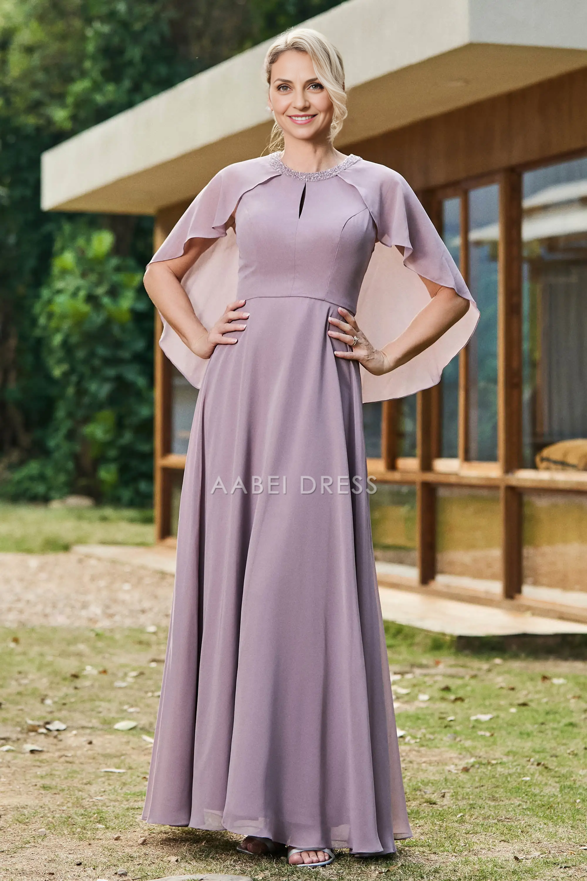 AABEI DRESS Wedding Guests Dresses Beautiful A-Line Round Neck Beadwork Flutter Sleeves Chiffon Ruched Dress Exquisite Mother of the Bride Dress