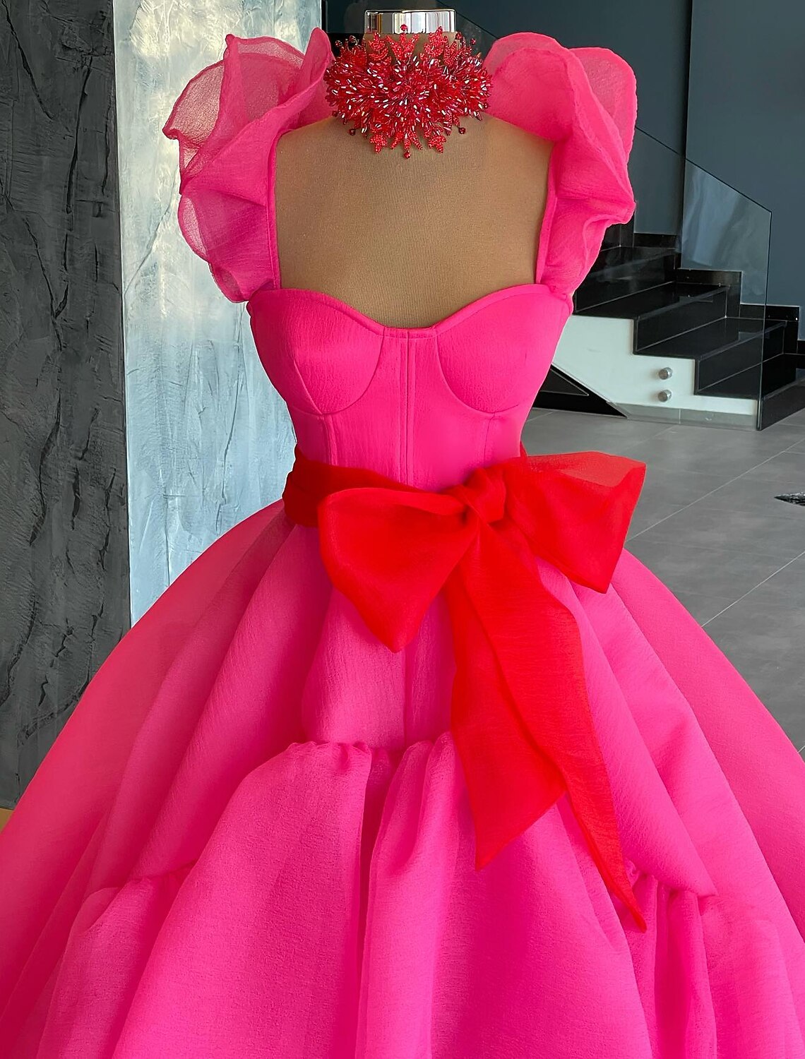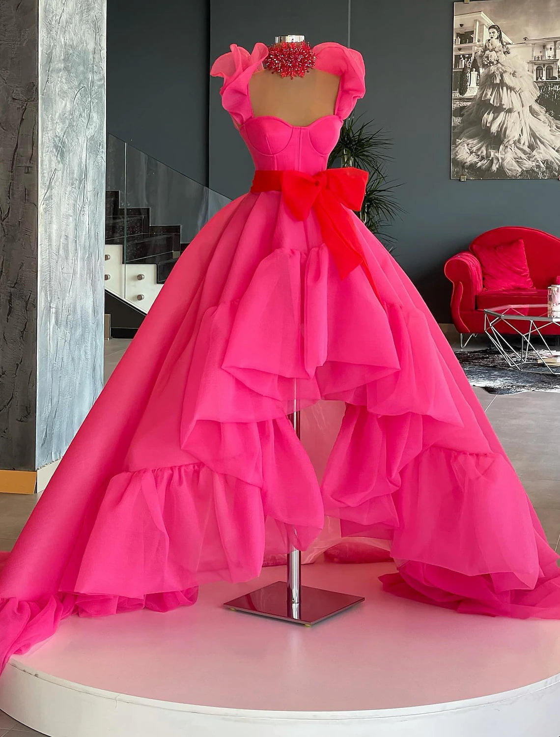 Ball Gown Evening Gown High Low Dress Quinceanera Asymmetrical Sleeveless Square Neck Organza with Bow(s) Ruffles