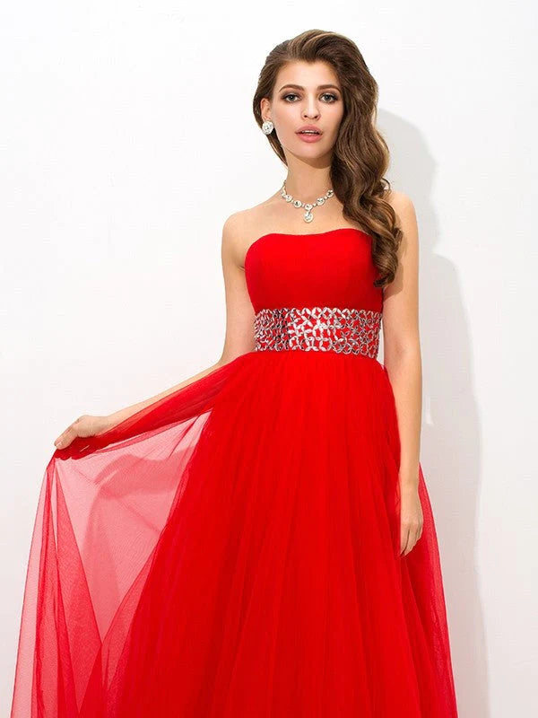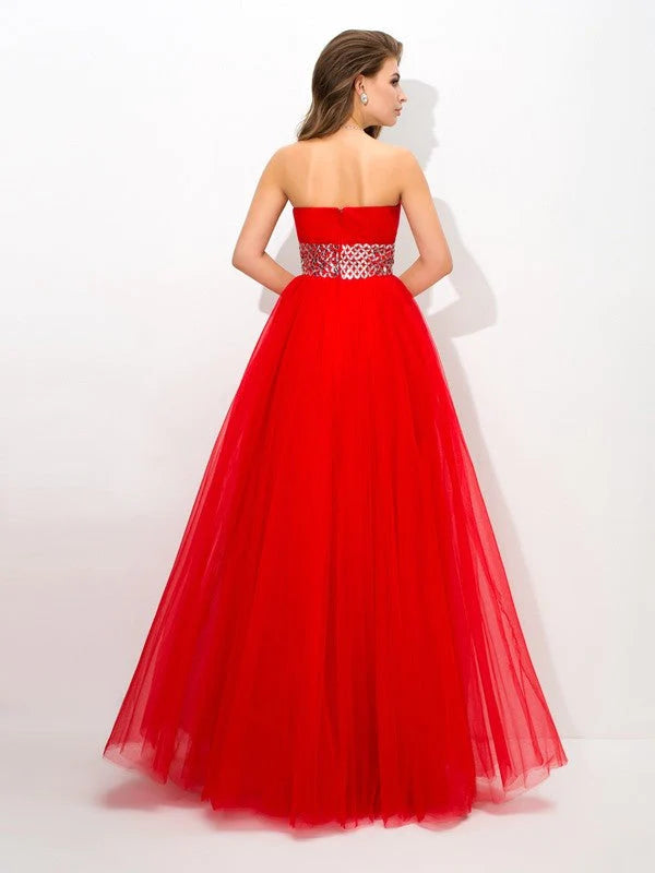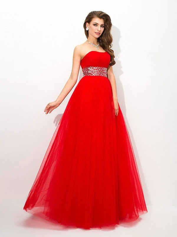 Ball Gown Strapless Beading Sleeveless Long Net Quinceanera Dresses