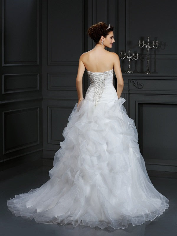 Ball Gown Strapless Beading Sleeveless Long Organza Wedding Dresses