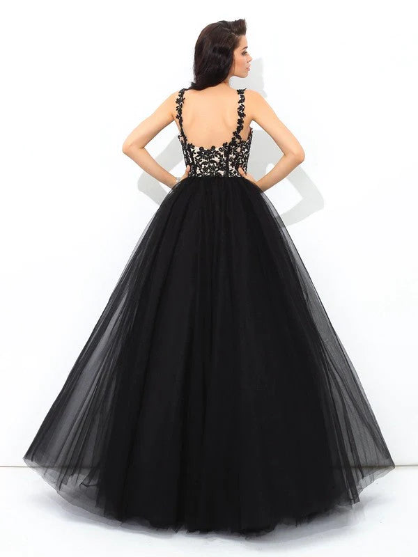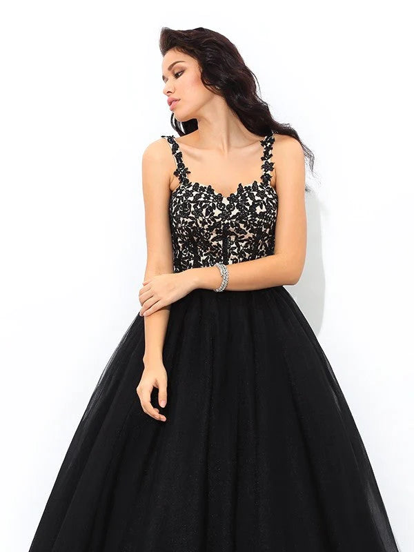 Ball Gown Straps Applique Sleeveless Long Net Quinceanera Dresses