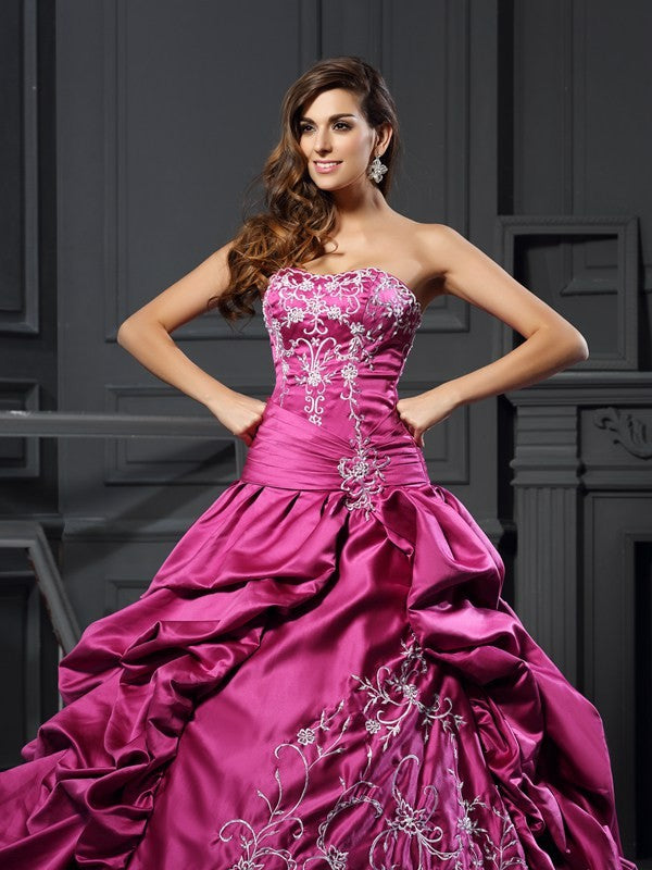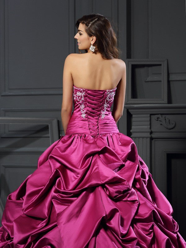 Ball Gown Sweetheart Applique Sleeveless Long Satin Quinceanera Dresses
