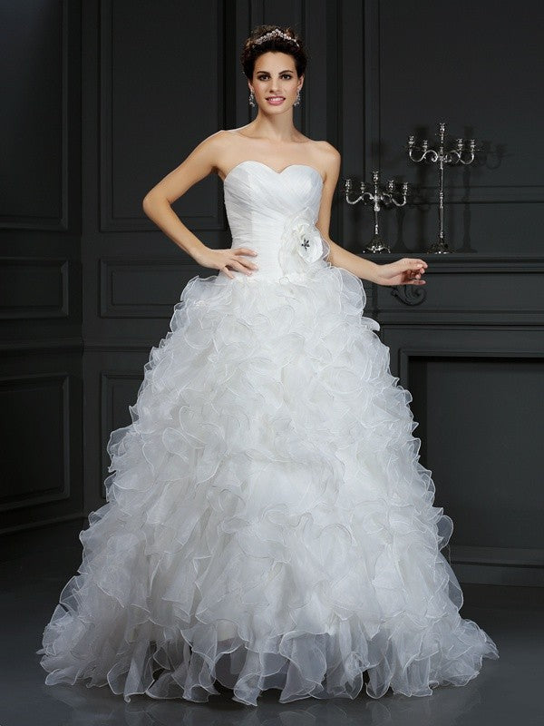 Ball Gown Sweetheart Hand-Made Flower Sleeveless Long Organza Wedding Dresses