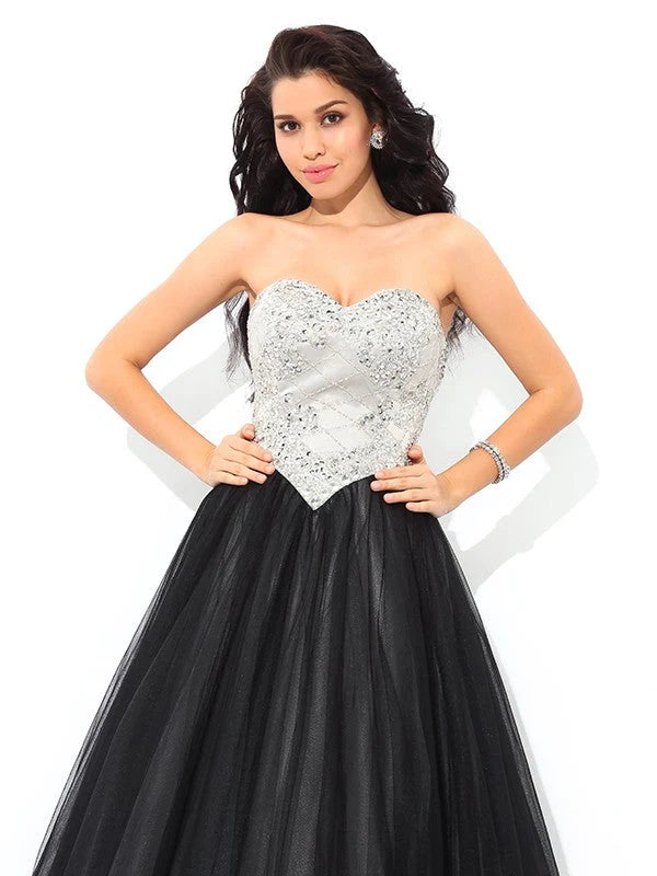 Ball Gown Sweetheart Paillette Sleeveless Long Net Quinceanera Dresses