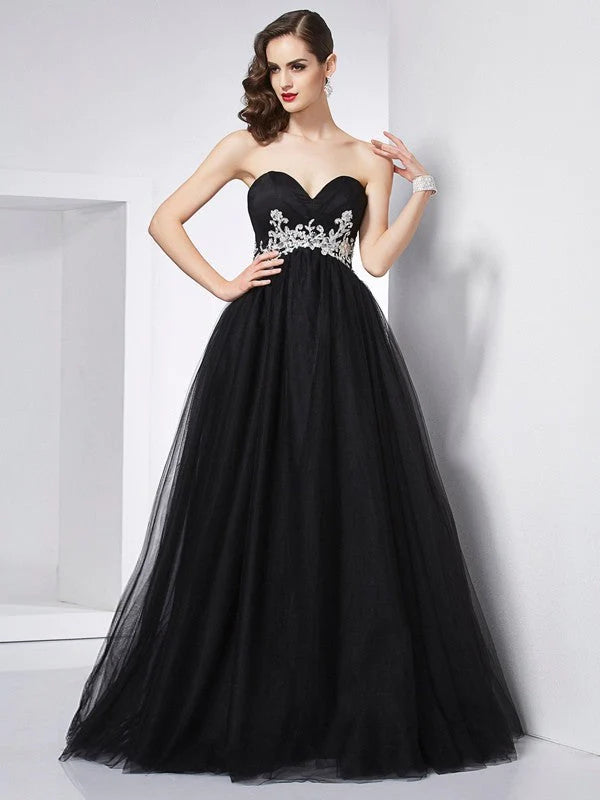 Ball Gown Sweetheart Sleeveless Applique Long Net Quinceanera Dresses